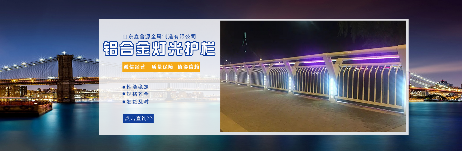 山東鑫魯源金屬制造有限公司主要經營:鋁合金橋梁護欄,鋁合金防撞護欄,鋁合金橋梁防撞護欄,鋁合金燈光護欄,不鋁合金橋梁護欄廠家,環(huán)波梁橋梁護欄,環(huán)波梁防撞護欄。質量可靠、經濟實用的顯著特點。公司為客戶提供可靠售后保障,堅持“以品質立足、服務求發(fā)展”,愿與各界朋友精誠合作、攜手發(fā)展! 服務優(yōu)勢:真誠的服務理念、完善的服務體系。公司專業(yè)力量充足;工程案例眾多、從業(yè)經驗豐富;公司以可靠質量的產品,合理的價格,完善的售后服務,能夠滿足市場各個企業(yè)的需求。 企業(yè)精神:執(zhí)著追求 持續(xù)創(chuàng)新執(zhí)著追求,就是堅持不懈、堅定從容,專注于自己的事業(yè),把能做的事情做好,不斷克服困難、把握機遇,贏得未來。 持續(xù)創(chuàng)新,就是生命不息、創(chuàng)新不止,通過持續(xù)實施技術創(chuàng)新、管理創(chuàng)新、市場創(chuàng)新,獲取持續(xù)的競爭優(yōu)勢。...